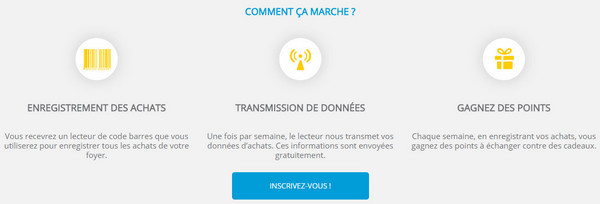 Le fonctionnement est simple, si vous êtes sélectionnés pour faire partie du panel vous recevez chez vous un scanner de codes barres et à chaque fois que vous rentrez des courses vous scannez vos achats.